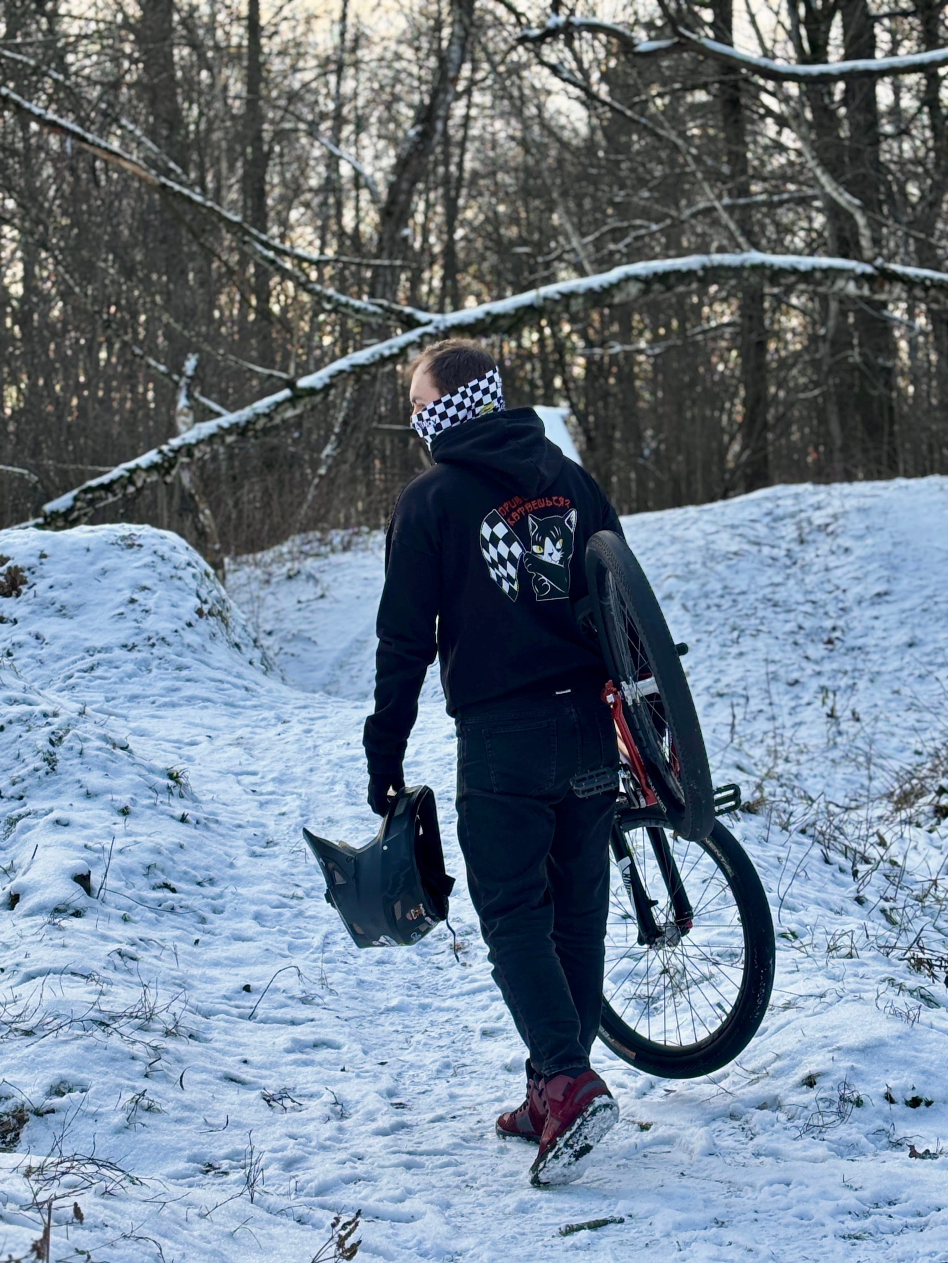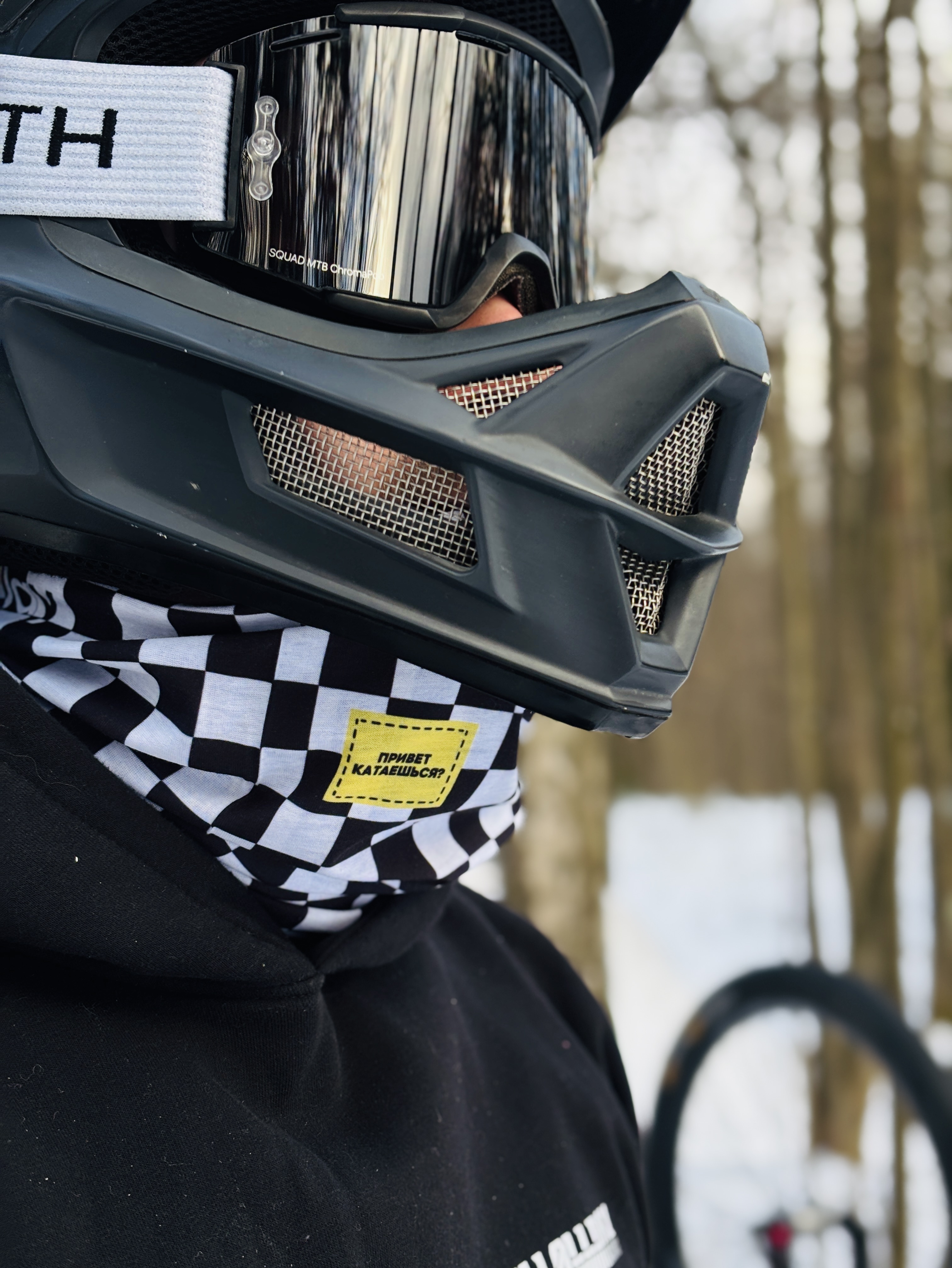 Можно носить как шарф, а также надевать под шлем!